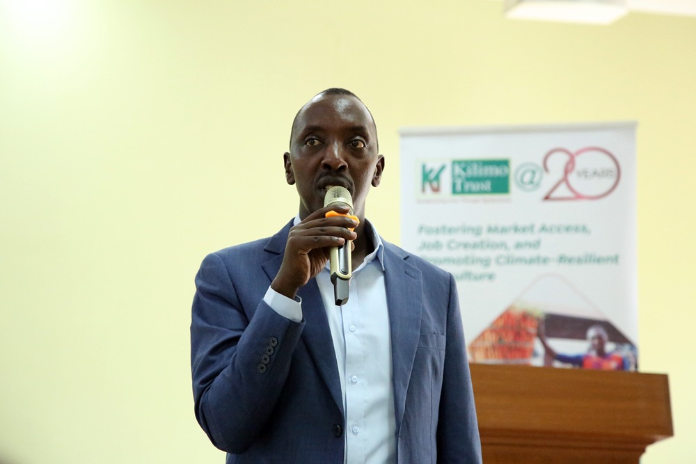 Andrew Gashayija, Kilimo Trust Rwanda’s Team Leader, highlighted the organization’s 20-year journey. Over this period, they have reached approximately 350 smallholder farmers in Rwanda, facilitated over 200 new businesses, and directly created close to 10,000 jobs. This reflects Kilimo Trust’s commitment to fostering market access, job creation, and promoting climate-resilient agriculture.