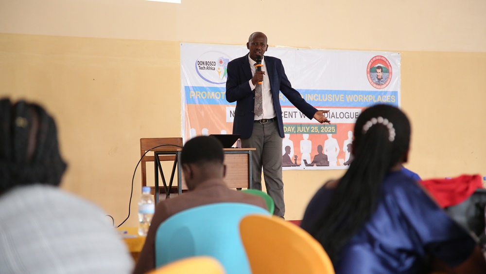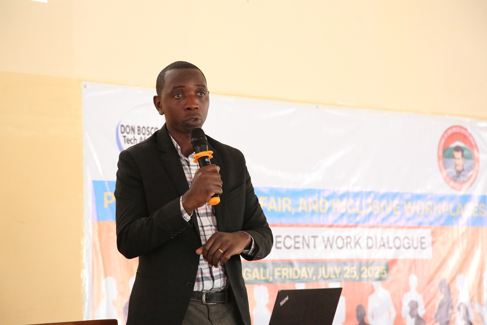 Eng. Andre MUTSINDASHYAKA, Secretary General of the Rwanda Extractive Industry Workers Union (REWU), delivered this message during a presentation on “Decent Work” at a multi-stakeholder event held on July 25, organized by the Salesians of Don Bosco Rwanda in collaboration with Don Bosco Tech Africa.
